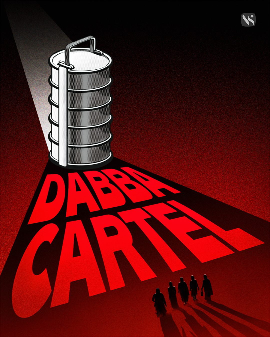 Inspired by the gripping world of Dabba Cartel, this poster uses dramatic lighting, bold typography, and striking symbolism to convey mystery, power, and rebellion. The towering tiffin carrier casts a long shadow, hinting at the hidden empire built by the women at the heart of the story. The silhouettes add an air of intrigue, representing strength and unity in the face of adversity.